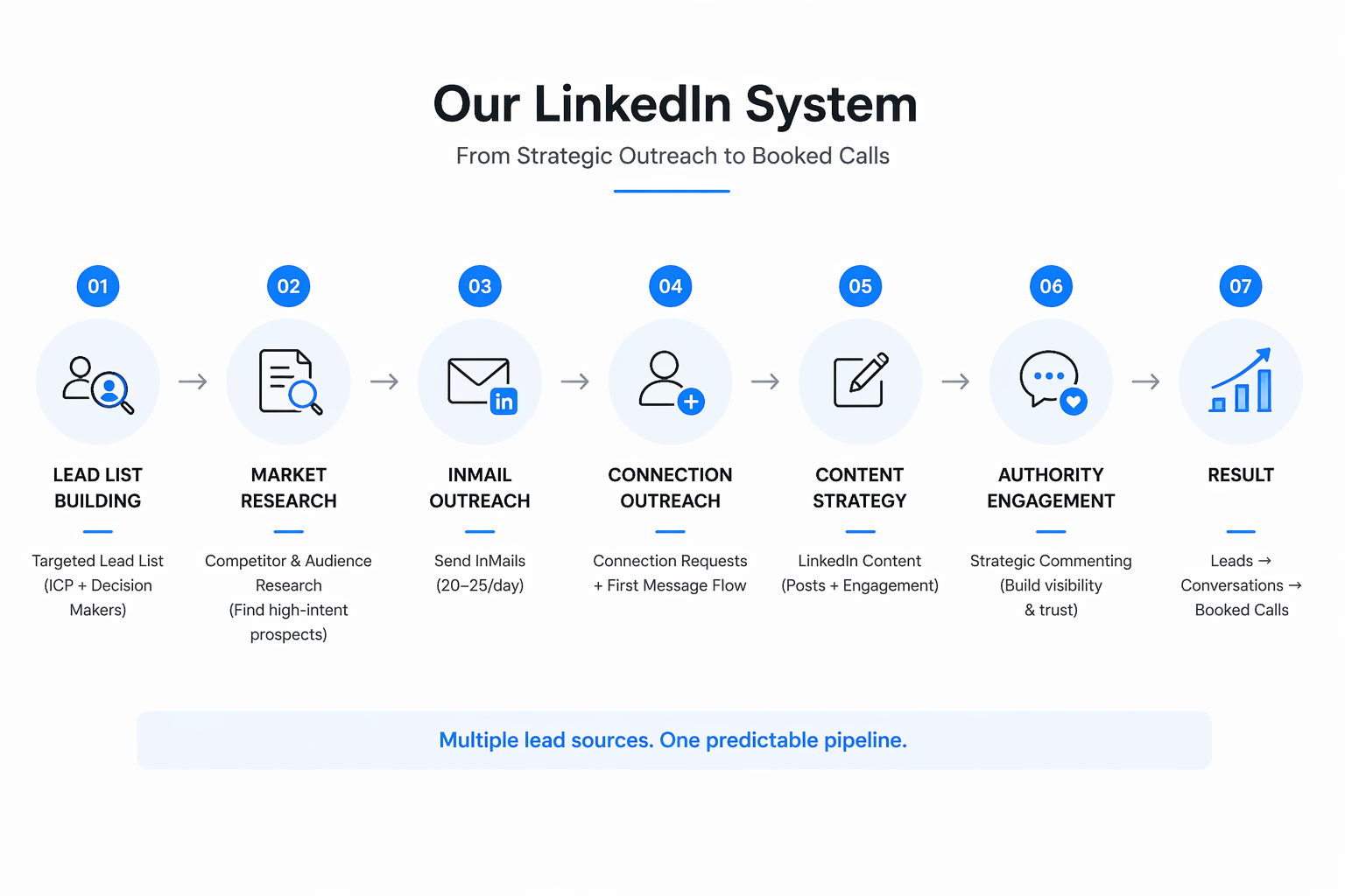 We help service-based businesses turn LinkedIn into a predictable source of qualified leads and booked calls.